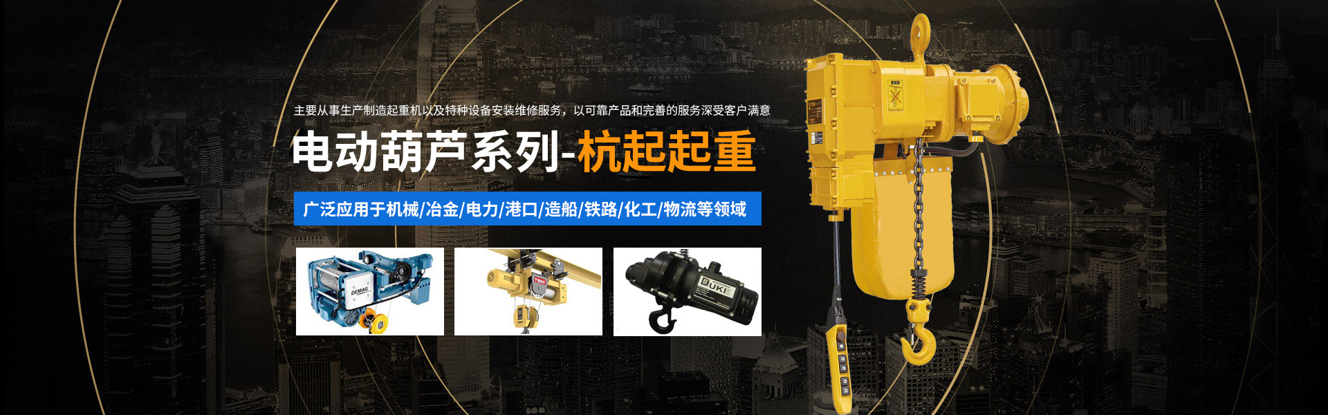 產(chǎn)品中心主要經(jīng)營門式起重機、橋式起重機、電動葫蘆、懸臂吊、升降平臺、起重機配件的研發(fā)、銷售、安裝和維修。